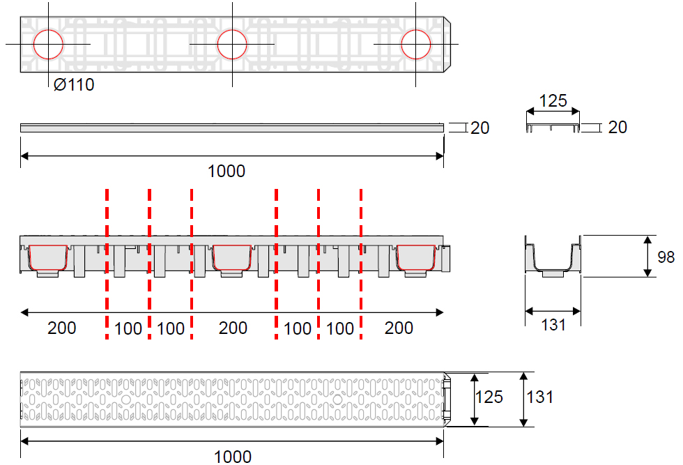 - Materiał: PP (kanał) ; PP (krata)