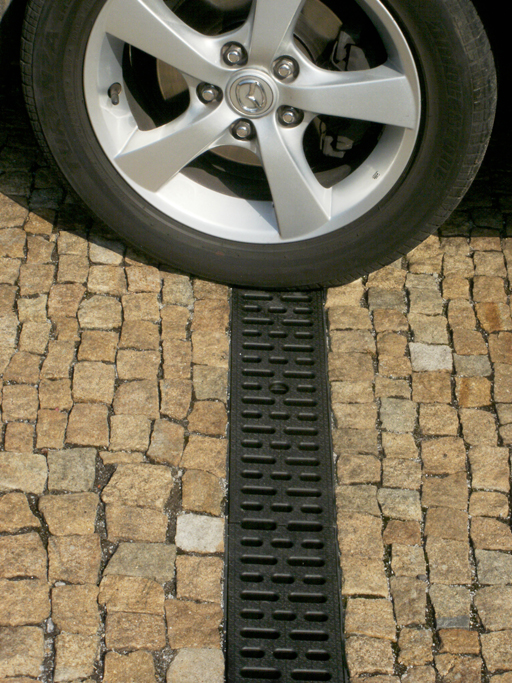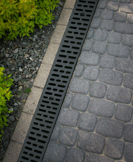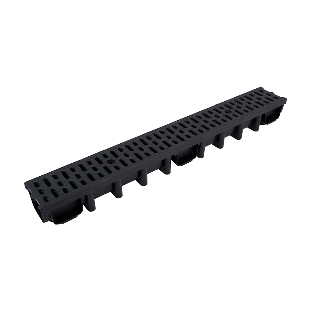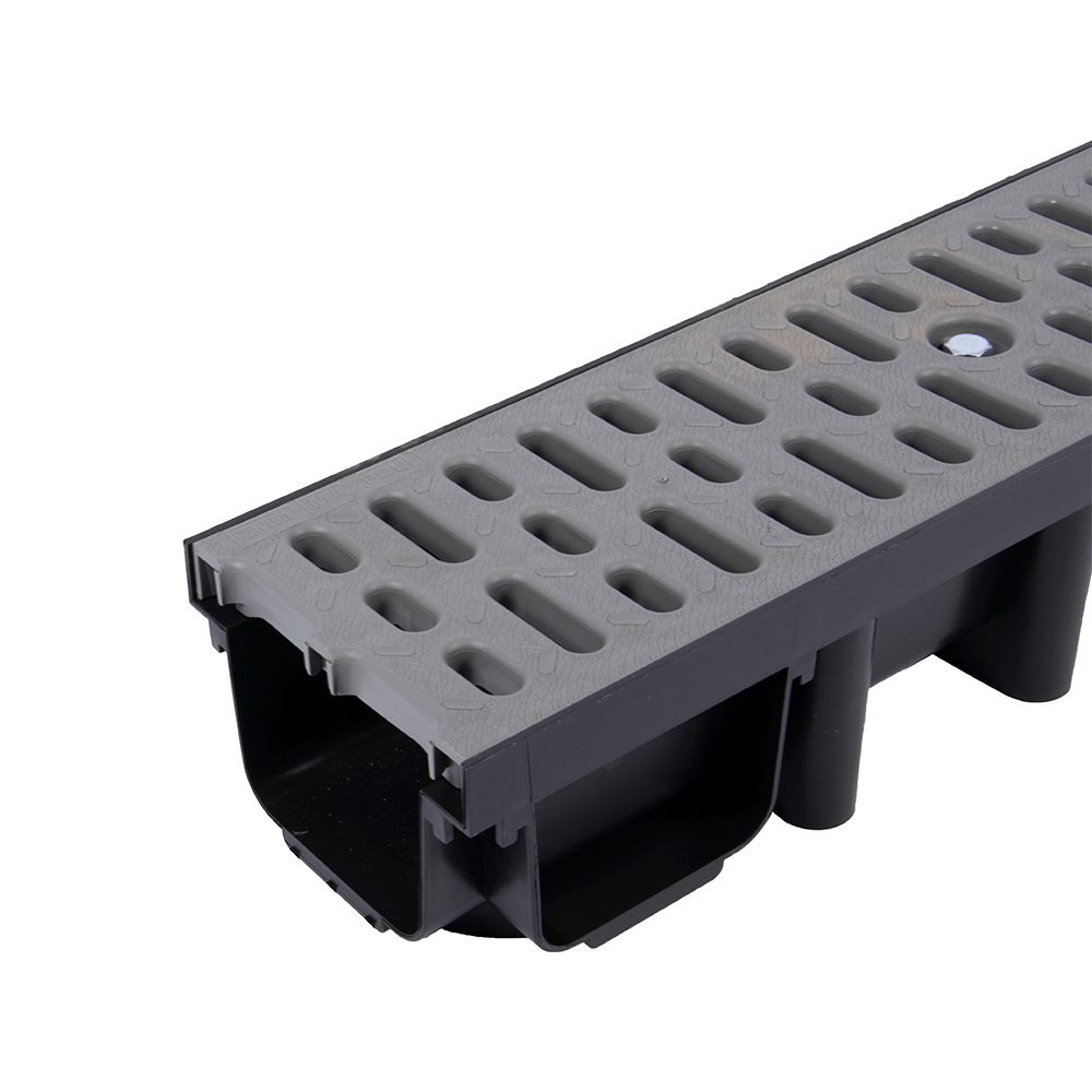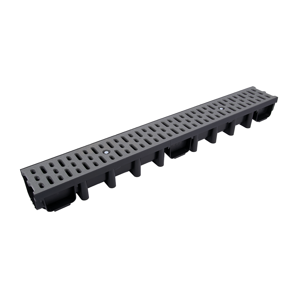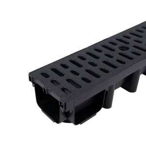 Kanał odprowadzający wodę o wysokości 98 mm z kratą wykonaną z tworzywa o klasie obciążenia A15 (1,5 tony).