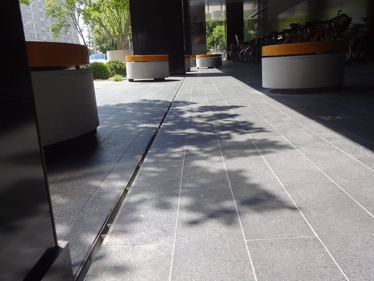 Odwodnienia liniowe z rusztem szczelinowym to wybór eleganckiego rozwiązania. Zminimalizowana widoczność elementów odpływowych nie narusza nowoczesnej aranżacji nawierzchni.
