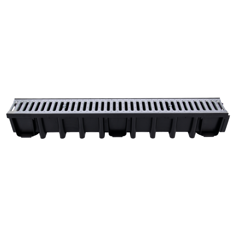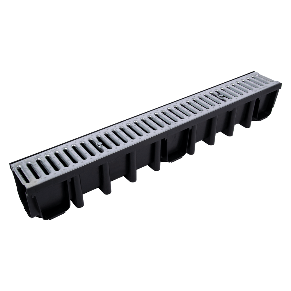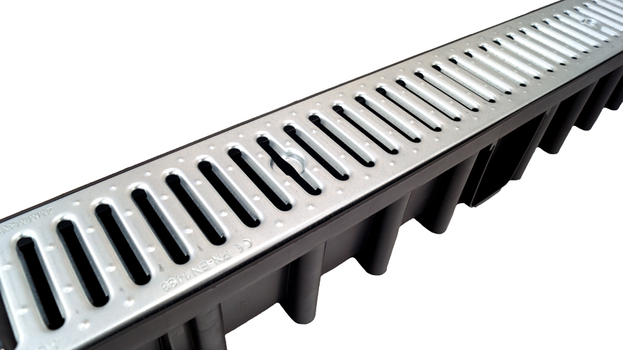 Kanał odprowadzający wodę o wysokości 148 mm z kratą wykonaną ze stali o klasie obciążenia A15 (1,5 tony).