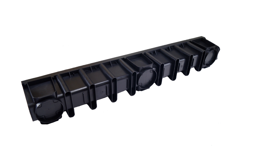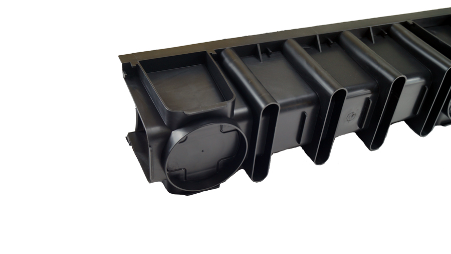 Do kanału można podłączyć rurę Ø 110 nasuwając ją na odpływ. Możliwe jest również wycięcie w dnie kanału odpływu na rurę Ø 110.