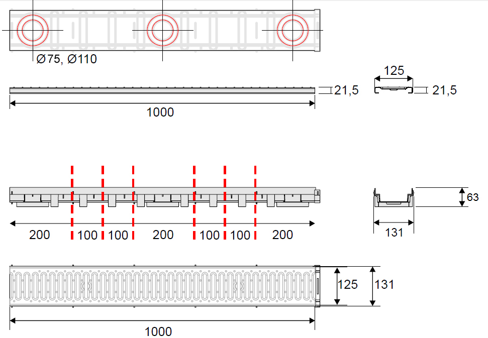 Wymiary : 1000 x 131 x 63 [mm] (długość x szerokość x wysokość)