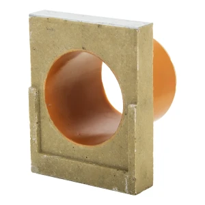 Ścianka czołowa z króćcem do kanałów z polimerobetonu, pozwalająca odprowadzić wodę z układu w bok. Połączenie kanału ze ścianką należy uszczelnić. |